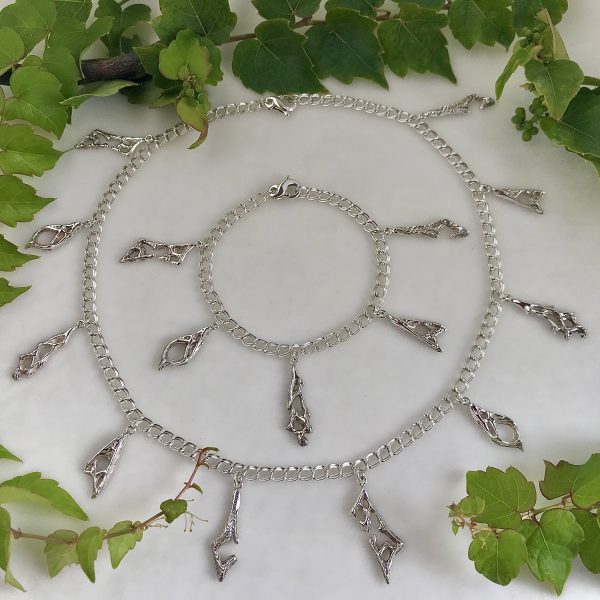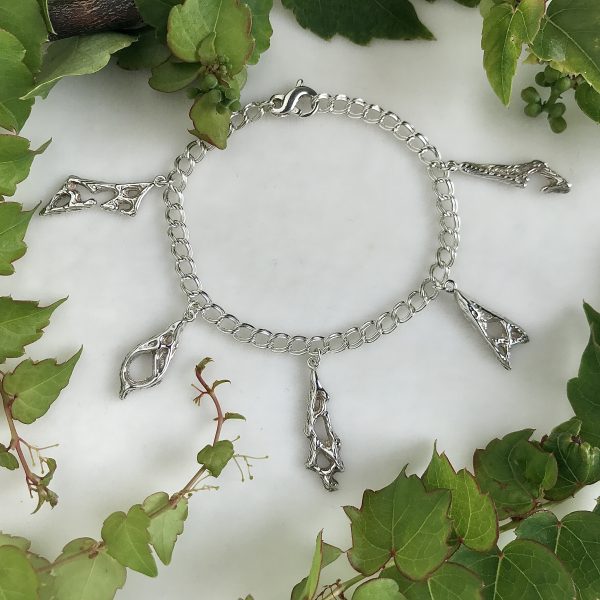 The original Multi Angle Charm designs were cast in sterling silver using a process known as cuttlefish bone casting. Cuttlefish bone casting is an ancient technique that is fairly simple, but it is often difficult to get the desired results. The bone in the body of the cuttlefish is slightly flat and oblong. A piece of this bone is cut in half and sanded so the two pieces fit together smoothly to create the mold. The design is then carved into one side of the soft cuttlefish bone to create a negative space. A paintbrush is used to sweep away any debris left in the carved area. This also helps to emphasize the texture created by the cuttlefish bone. The two pieces of bone are then bound together with wire to hold them together taut.