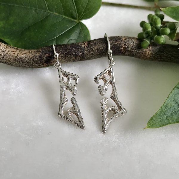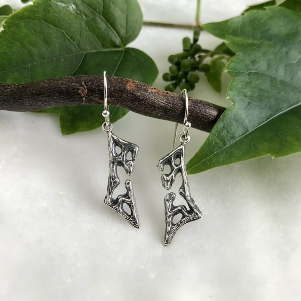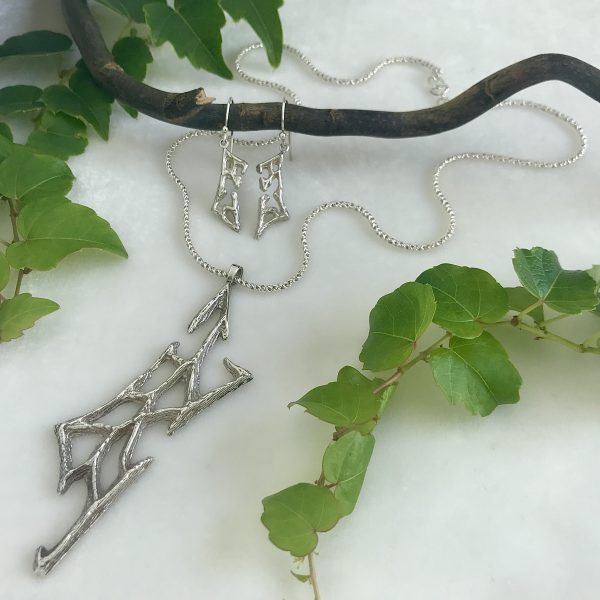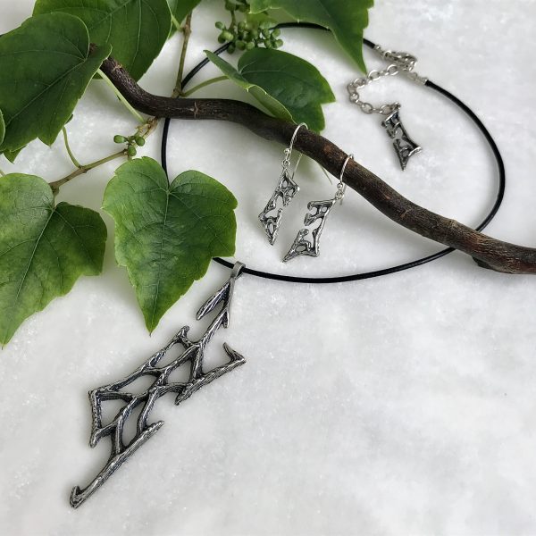 The original Rectangle set was cast in sterling silver using a process known as cuttlefish bone casting. Cuttlefish bone casting is an ancient technique that is fairly simple, but it is often difficult to get the desired results. The bone in the body of the cuttlefish is slightly flat and oblong. A piece of this bone is cut in half and sanded so the two pieces fit together smoothly to create the mold. The design is then carved into one side of the soft cuttlefish bone to create a negative space. A paintbrush is used to sweep away any debris left in the carved area. This also helps to emphasize the texture created by the cuttlefish bone. The two pieces of bone are then bound together with wire to hold them together taut.