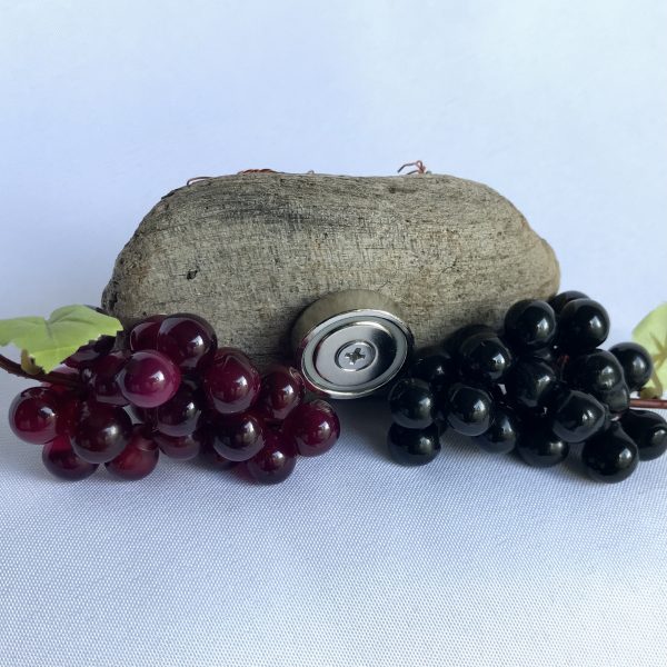 These tiny grapevine magnets will be the perfect addition to any wine cooler and are the ideal size for traveling visitors.  This miniature work of art has three tiny bunches of ripe grapes hanging from the vine.  Each piece has a strong magnet screwed into the back of the driftwood.