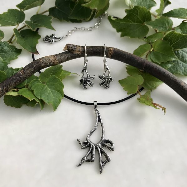 Cuttlefish Bone Cast Sterling Silver Sun Burst Pendant and Earrings