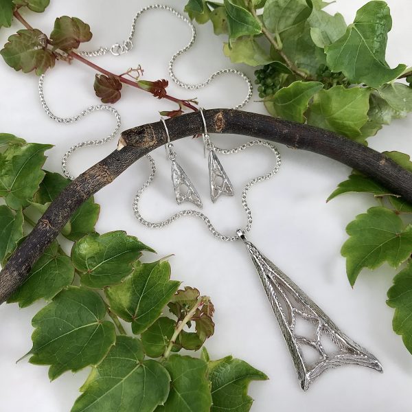 Cuttlefish Bone Cast Sterling Silver Triangle Pendant and Earrings